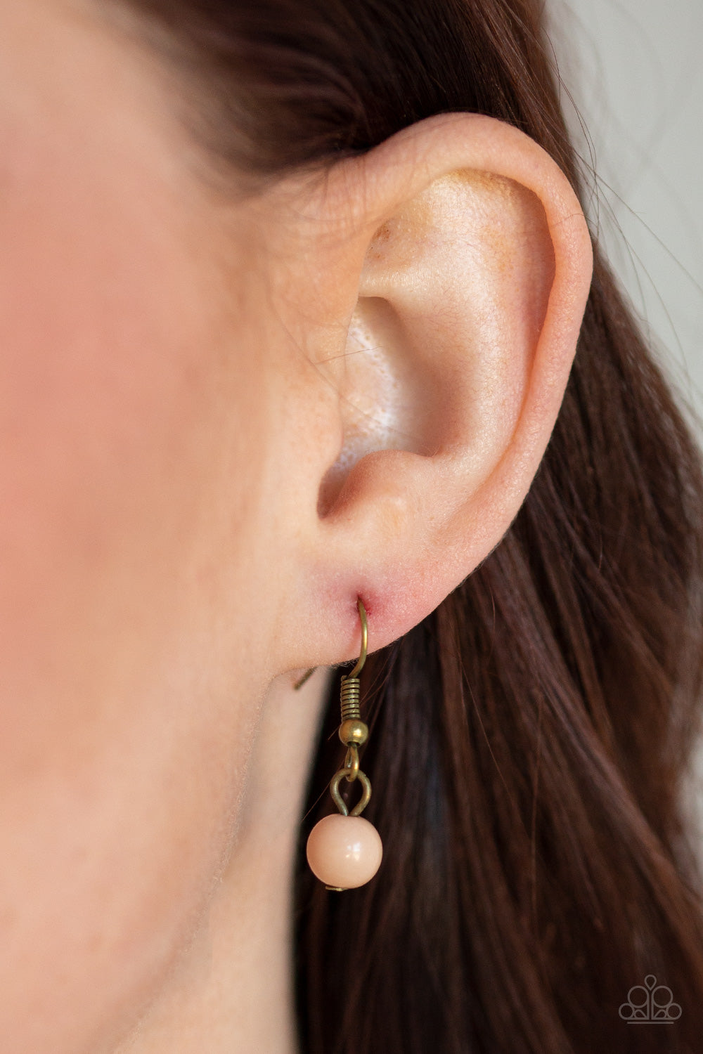 Varying in opacity and shape, a collection of polished, pearly, and glassy brown beads link with antiqued brass beads across the chest for a whimsical finish. Features an adjustable clasp closure. Paparazzi Accessories