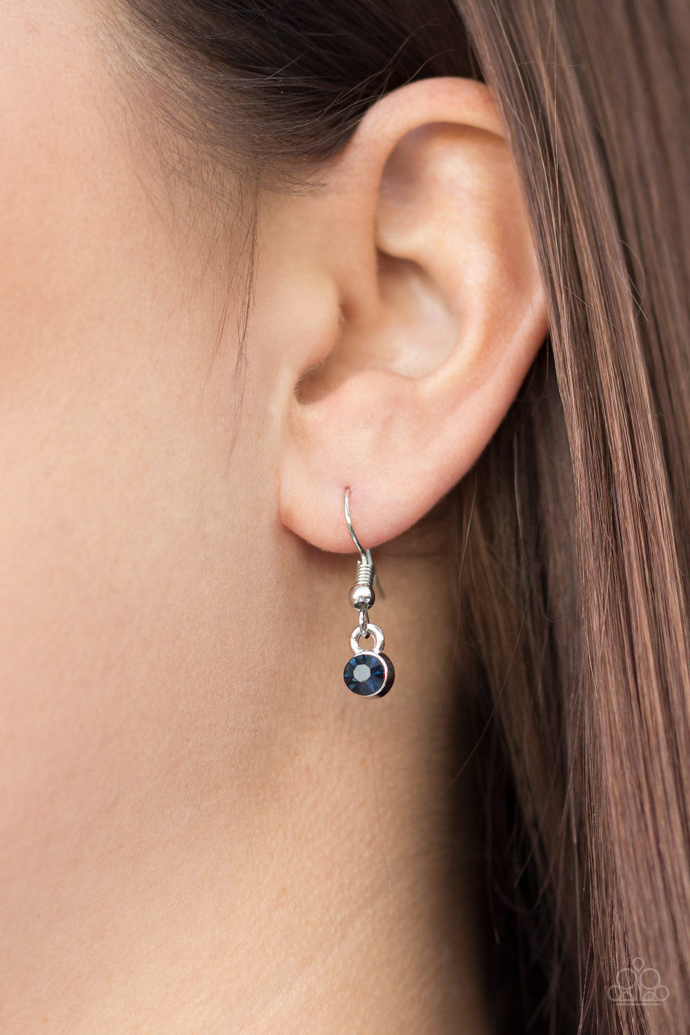 Varying in size, an array of glittery white and blue rhinestones are encrusted along a shimmery silver hoop. The sparkling pendant swings from the bottom of an elongated silver chain for a glamorous finish. Features an adjustable clasp closure. Paparazzi Accessories